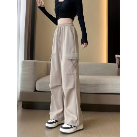 Solid Flap Pocket Jogger Cargo Pants, Casual Drawstring Pants For Spring & Fall, Women's Clothing